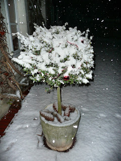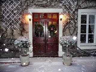 "If you wish to make the holly look snow-laden, moisten it with weak gum, or starch water, and then sprinkle with flour from a dredger"How to Decorate the House at Christmas Time, from (Victorian)