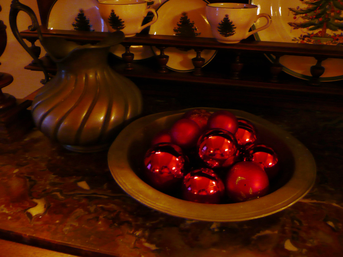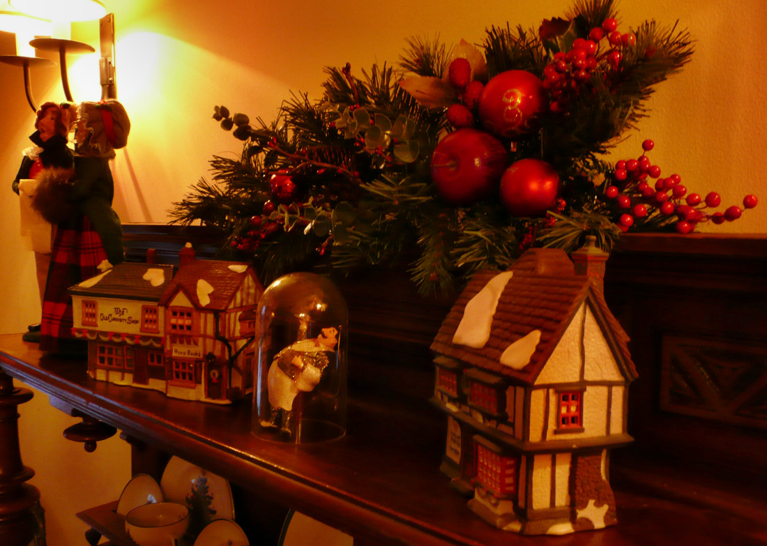 Usually just a pair of wreaths on the double front doors although last year I did decorate the box topiaries too.