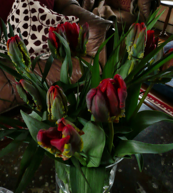 Yesterday Mr B brought me these wonderful tulips back from the market and so I thought I'd share them with Liz over at Rose Vignettes for Fresh Cut Friday and also with The Tablescaper for Seasonal Sundays.