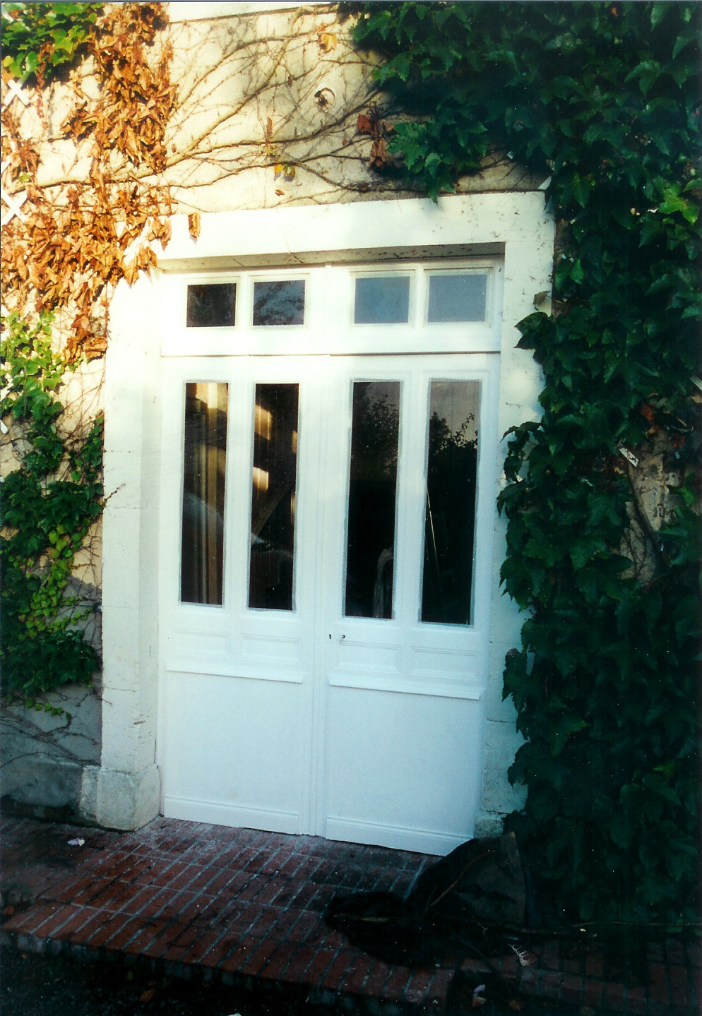 The original, white painted, front doors - notice there's no lock or door handle.