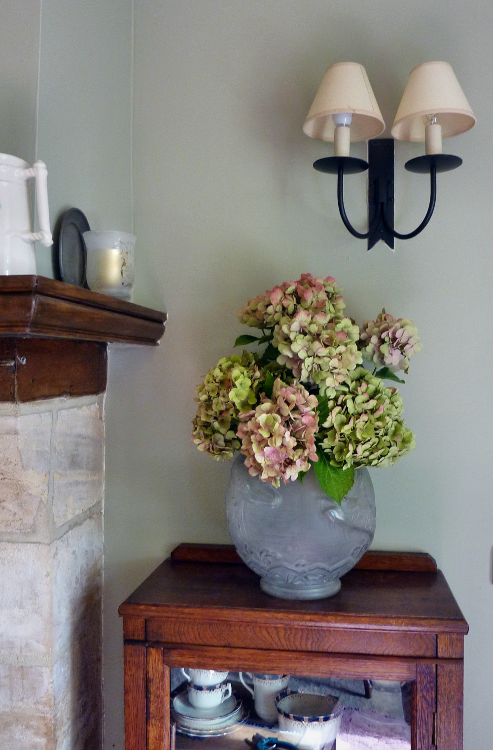 | herbs planted close to an ancient stone building where garden tools are housed onions and shallots hung against the wall a wheelbarrow full of leeks ready to go to the restaurant kitchen |