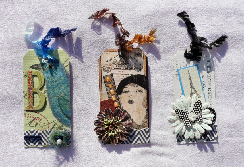 The photo below is of the three tags I made for the Tag Swap, and I'm very pleased with how they turned out.