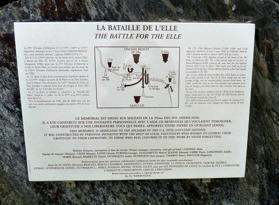 "This memorial is dedicated to the soldiers of the U.S. 29th Infantry Division.