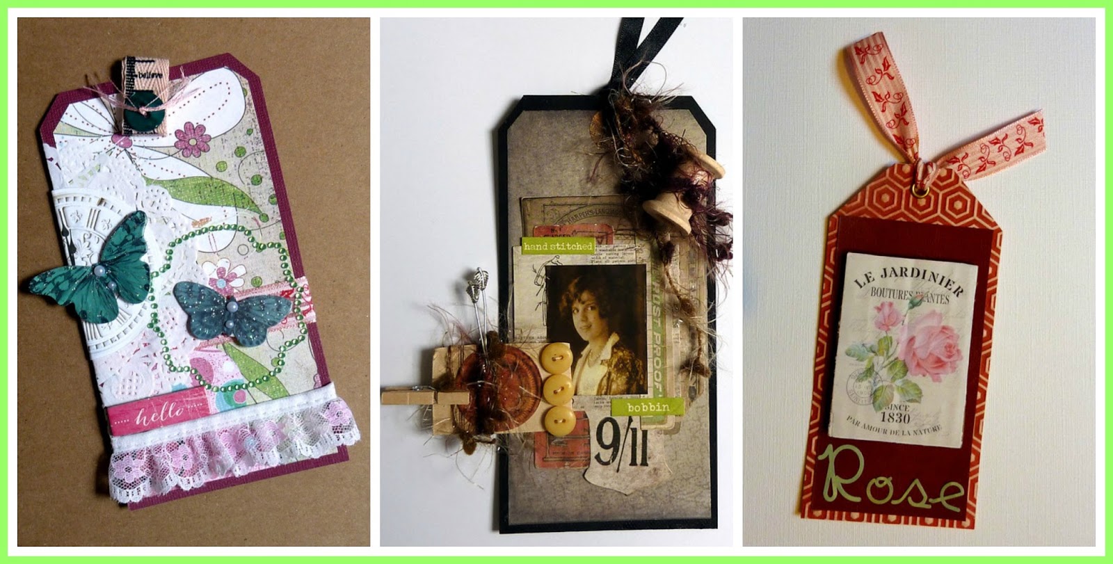 ReplyDeleteIronic that you post it because I just came upon two tags you sent me years ago the other day. Now they are on my inspiration board where they won't get buried. (For a long while, they were bookmarks!). These are all beautiful -- lots of diversity here. Tags are just my size! And useful, too!
