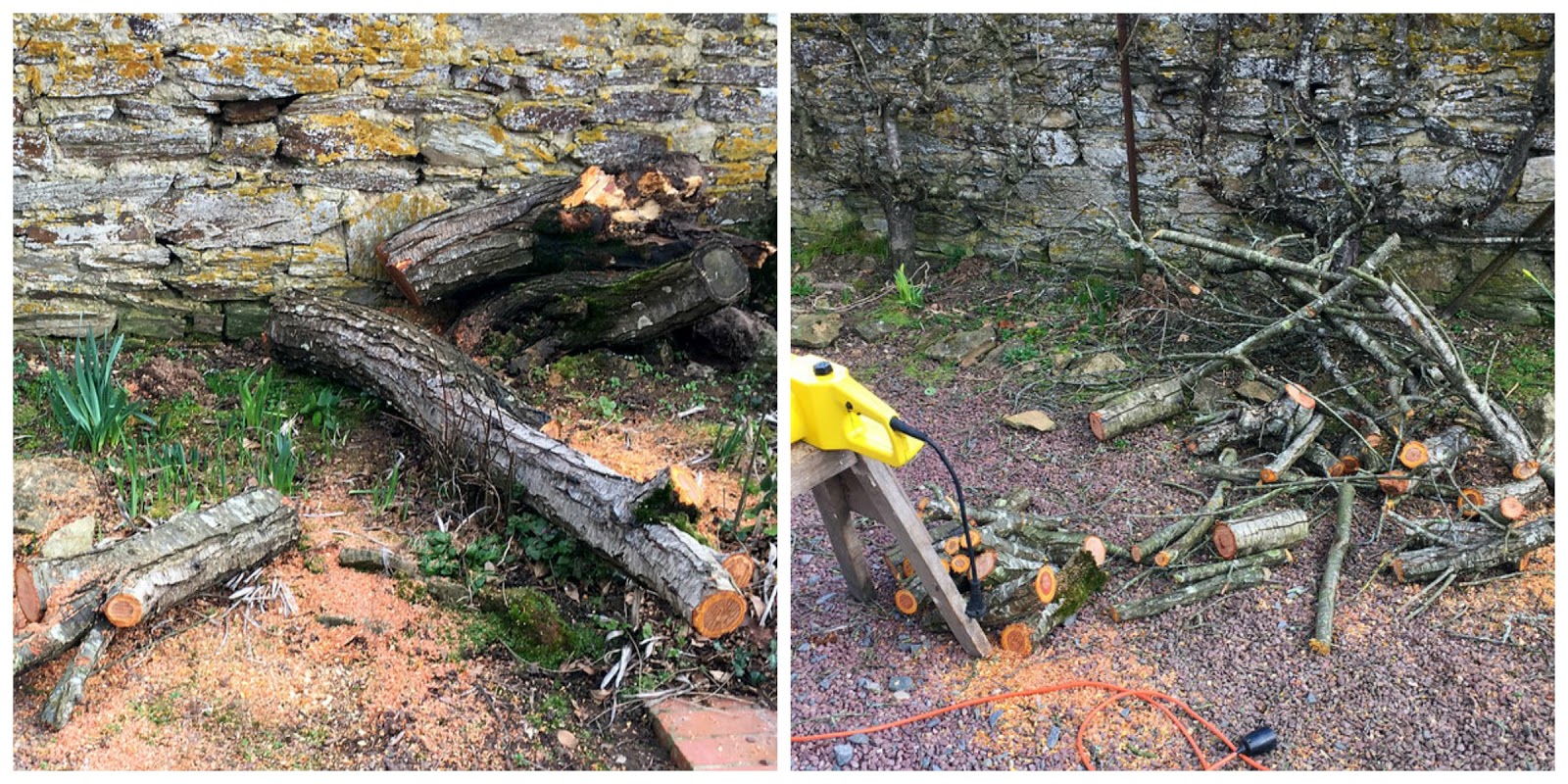 The chainsaw came out and the poor old damson tree was dispatched painlessly.