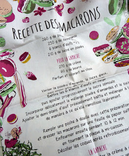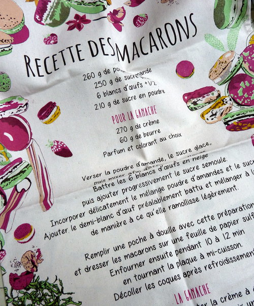 Last week we toured the Maison du Biscuit together and I teased you with a giveaway for this lovely torchon recette de macarons.
