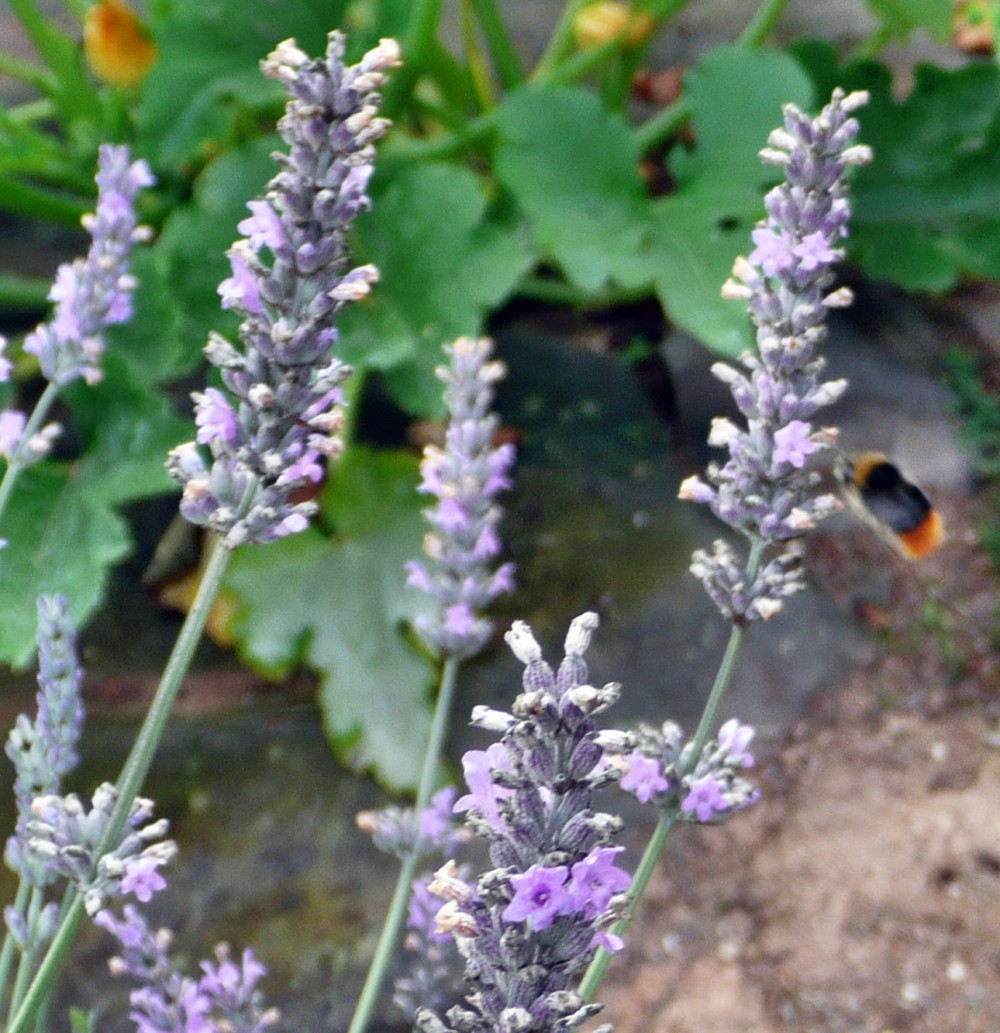Tasty green chives, and leaves from my Bay tree enhanced by nature's tears above, and below flat leaf parsley growing right alongside a new crop of dwarf haricot beans.