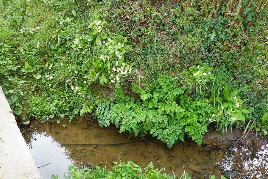 stream bank full of primroses