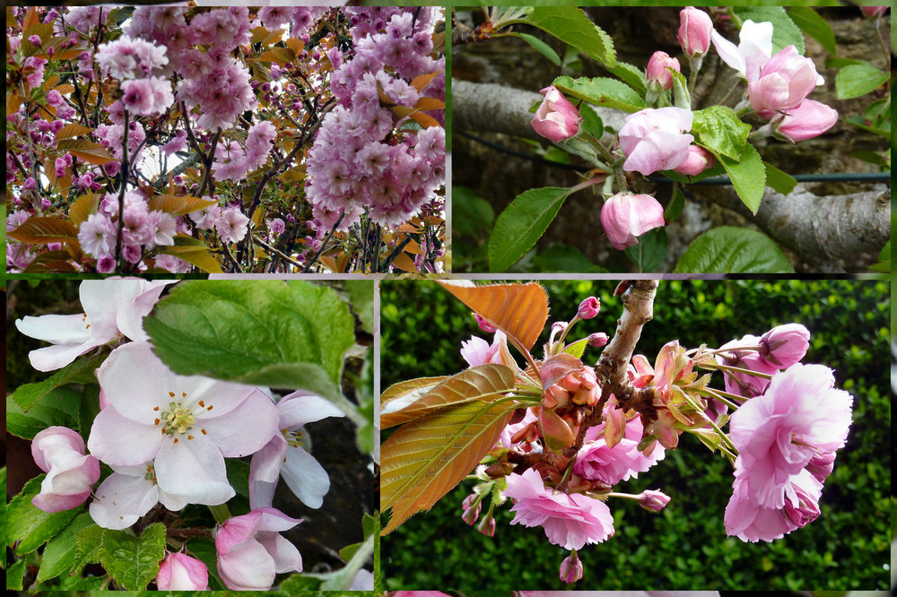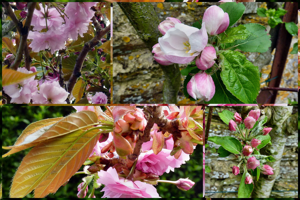 The ornamental cherry tree which is now almost as high as the house roof is a mass of vibrant pink blossom.